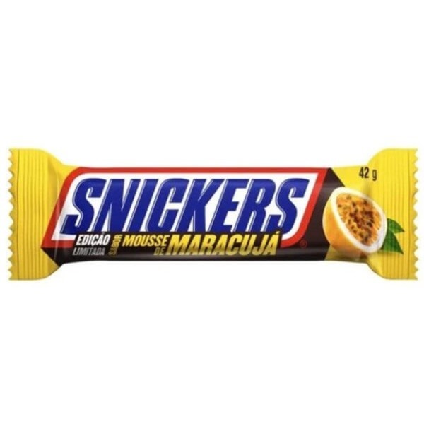 ¡Desde Brasil llegan estos Snickers de Maracuyá! Tienen todo lo que te encanta de los Snickers, pero tienen una mousse de maracuyá en lugar del turrón. Cada barra pesa 42 gramos.